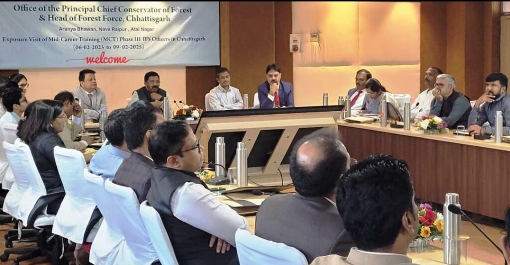 भारतीय वन सेवा के अधिकारियों का दल अध्ययन भ्रमण के लिए पहुंचा छत्तीसगढ़ के चार दिवसीय दौरे परवन प्रबंधन की सर्वश्रेष्ठ प्रक्रियाओं का करेंगे अध्ययन